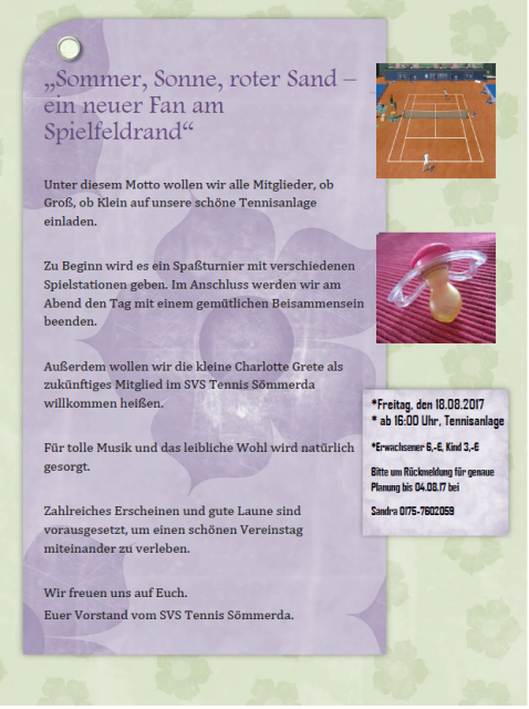 Wir laden alle Kinder und ihre Begleitpersonen herzlichst zum Eltern-Kind-Turnier ein.